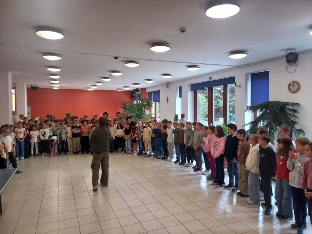 Alsó tagozatunk ma, október 1-jén a híres hegedűművész és karmester, Yehudi Menuhin szavaira emlékezve megtartotta a Zene Világnapjának ünnepét. Énekeinket ritmushangszerrel kísértük, és átéltük: a