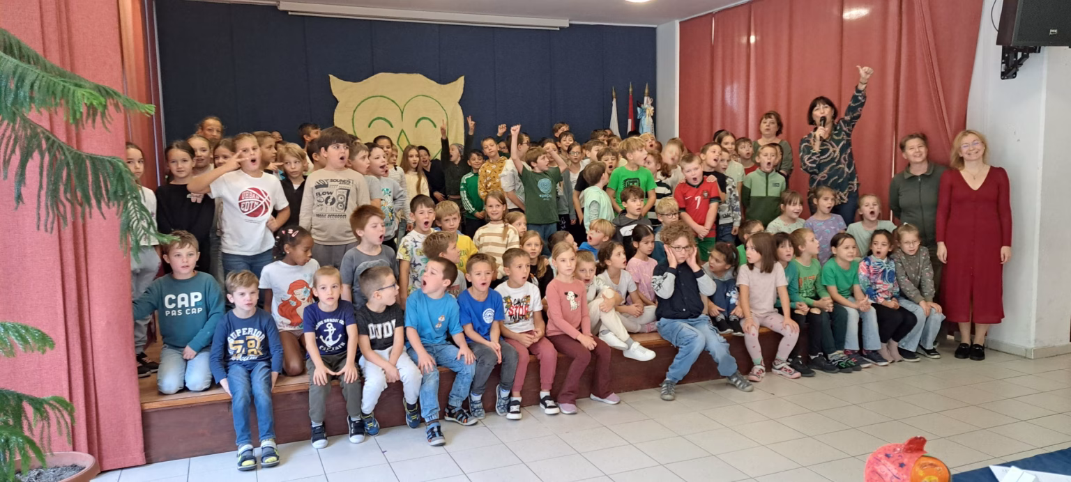 A TEREPASZTAL kiállítást egy közös alsós nagyfotó zárta az ÁLLATVÉDELMI TÉMAHÉT logója körül, egy nagy csatakiáltással: