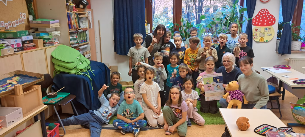 „2025. november 5-én az 5. órában egy érdekes érzékenyítő foglalkozás zajlott az 1. osztályban. Mókus osztályunk egyik tagja diabéteszes es, ezért a Szurikáta Alapítványtól érkező