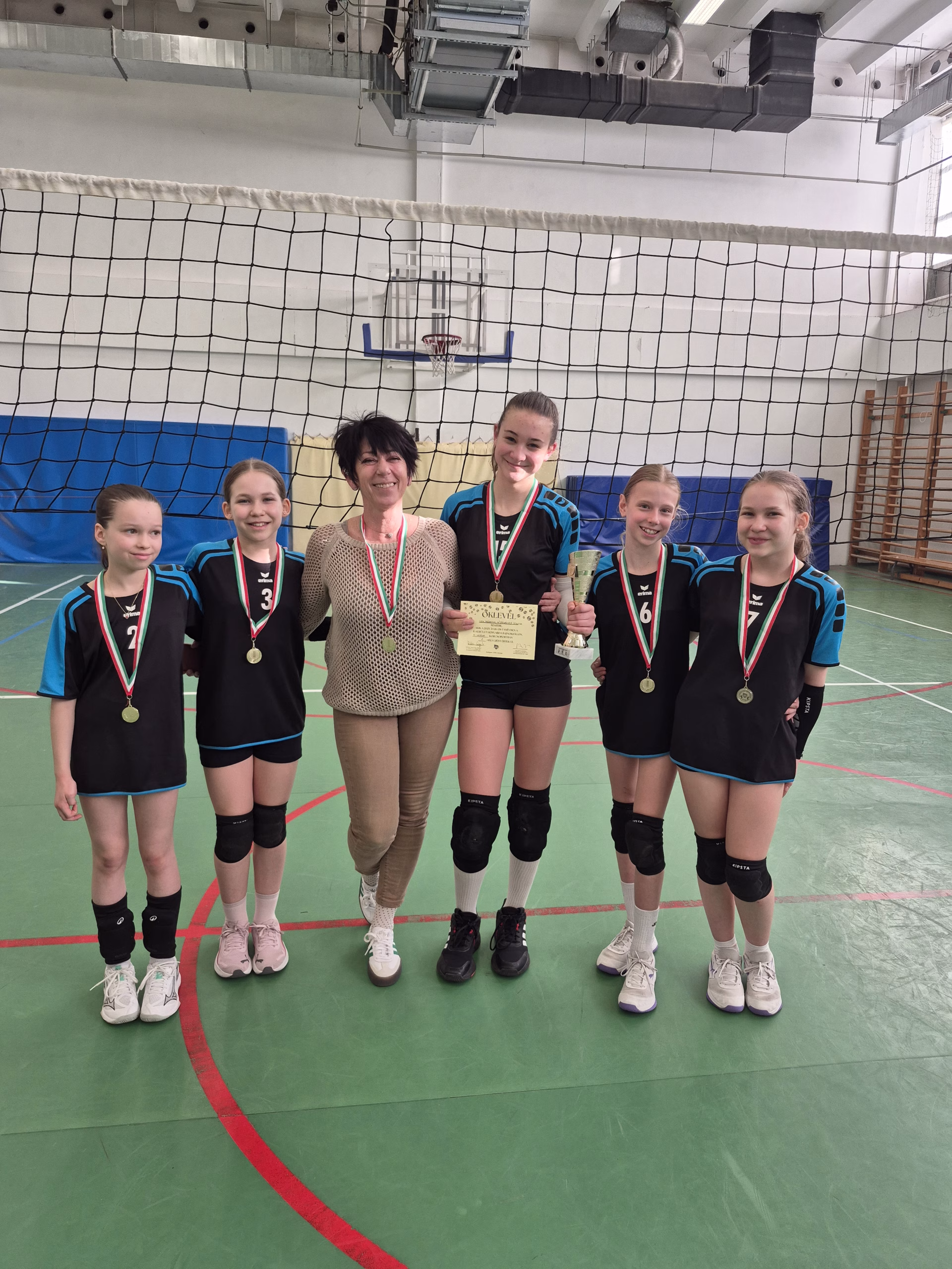 A XII. kerületi, III. korcsoportos leány röplabda Diákolimpián iskolánk csapata 1. helyezett lett.
