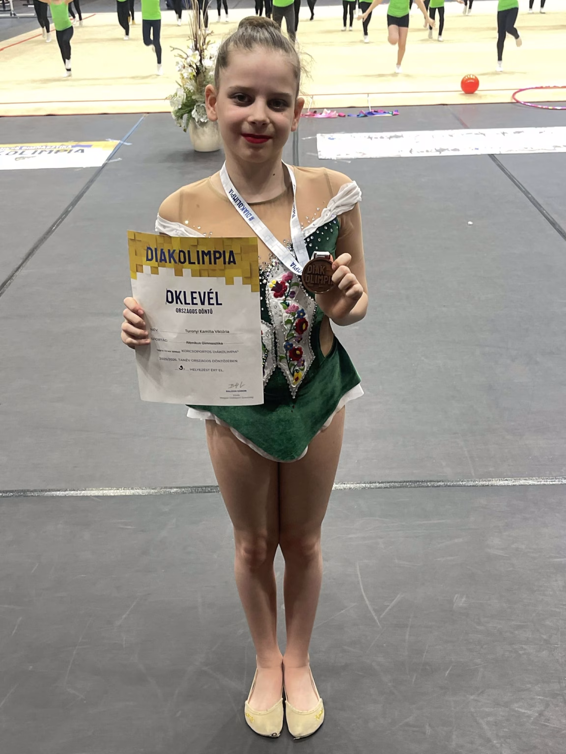 Turonyi Kamilla Viktória, iskolánk 5.a osztályos ritmikus gimnasztikás tanulója az Országos Diákolimpián, VSK2 II. korcsoportban, szabad kategóriában 3. helyezett lett.